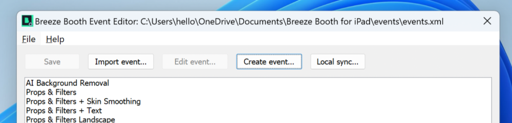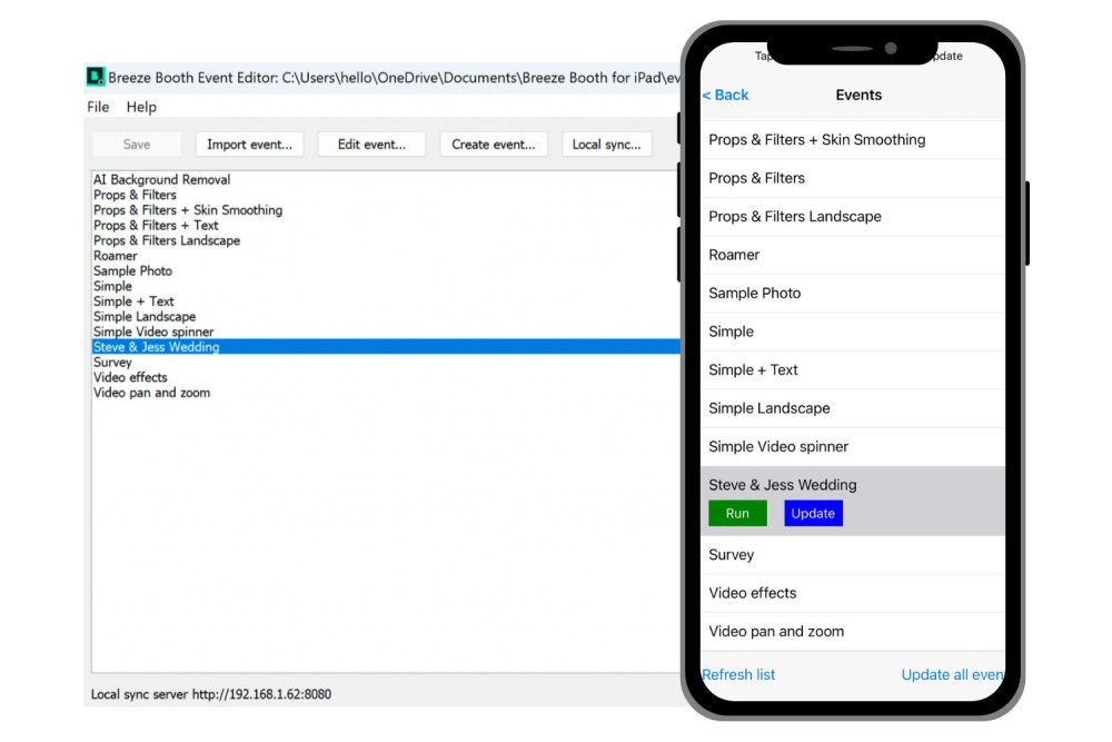 Once you are happy with your options press the Finish button to create your event. You should now see it in the list of events in the Event Editor. Assuming you have configured Syncing between your PC and Device, in the Breeze Booth App go to Events and select Refresh List to see the event on your device.