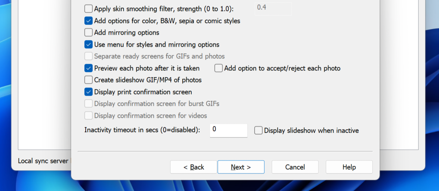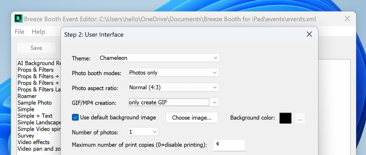 Now select your core photo booth options. These determine the overall experience, such as capturing a photo or a GIF, theme selection, etc.