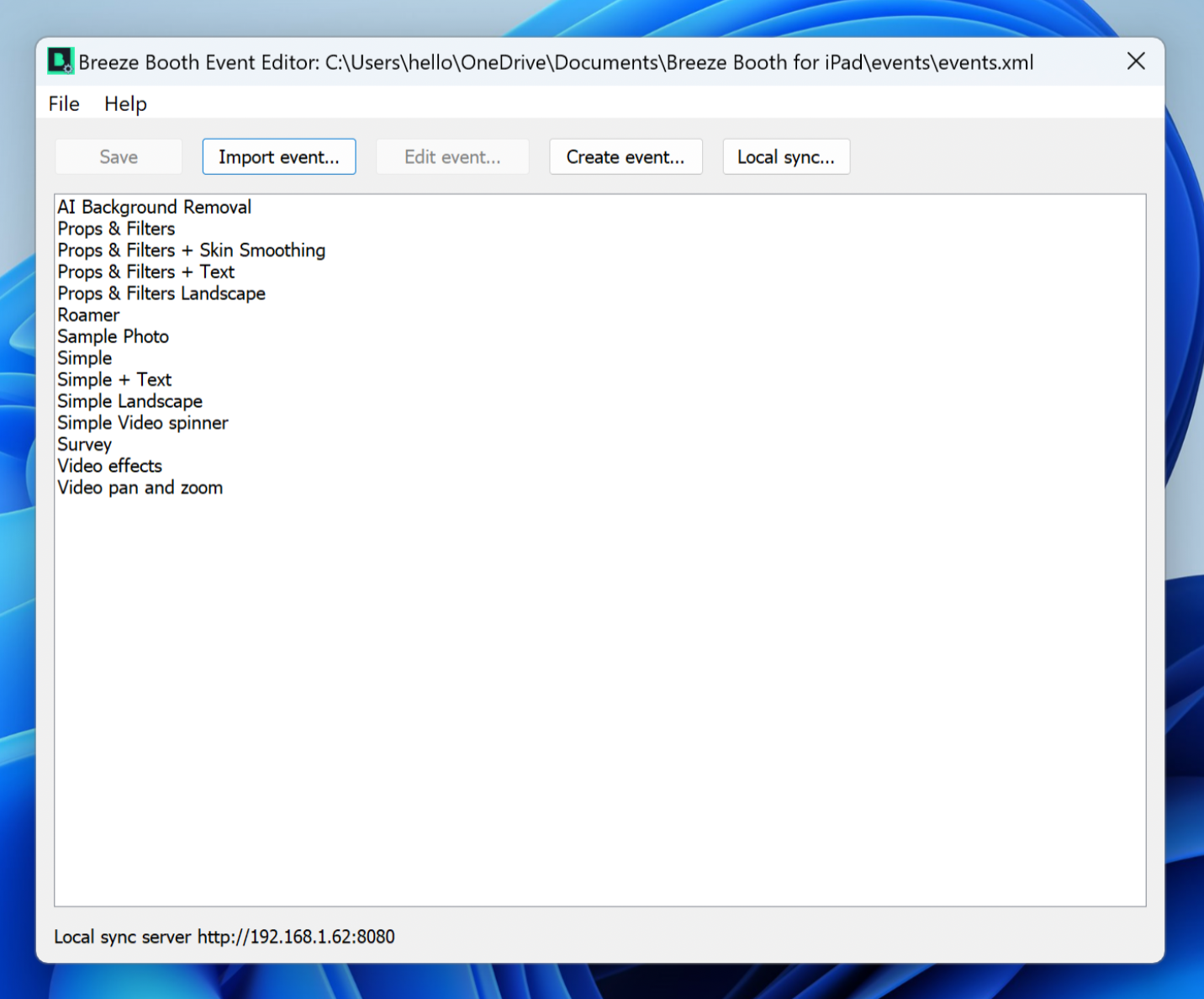 Breeze Booth comes with a selection of Demo Events you can test out. You will be prompted to install these on first run of Breeze Booth on your device, and when first installing the Event Editor.