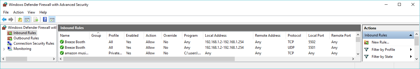 If you don’t see the iPad listed in the “Connected iPads” display in Breeze Hub on the Windows PC you may need to enable incoming UDP packets on the status port (default setting: 5501).