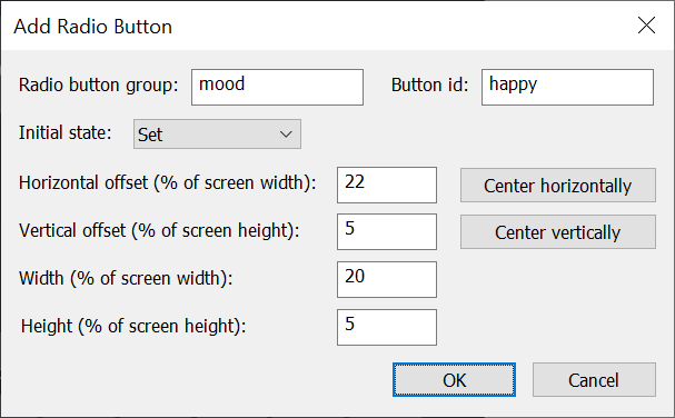 Right click on a radio button to edit it (or right click on the screen image and select “Add radio button…” to add one):