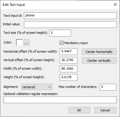 An optional regular expression can be used to validate the text entered by the user. For example if you want people to always prefix phone numbers with + followed by the country code the regular expression could be set to \+\d+