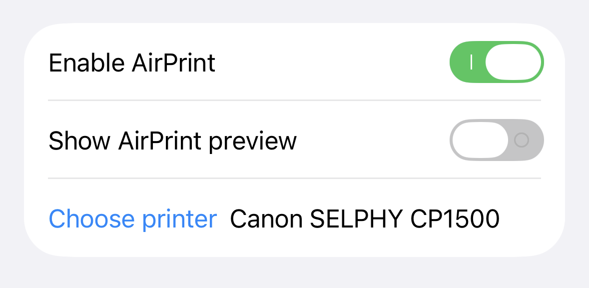 Optionally enable Show AirPrint preview to see the AirPrint dialogue when printing a session.