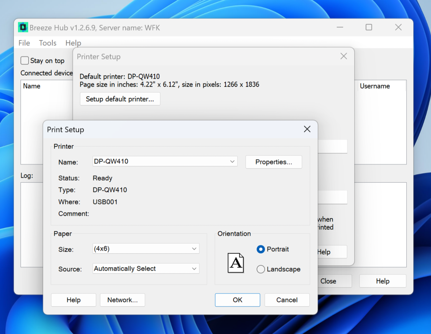 In order to print with Breeze Hub ensure that you have installed it as part of the Windows Companion Apps. Breeze Hub must be running on a PC that is on the same local network as your Device and your printer connected via USB with the driver installed.