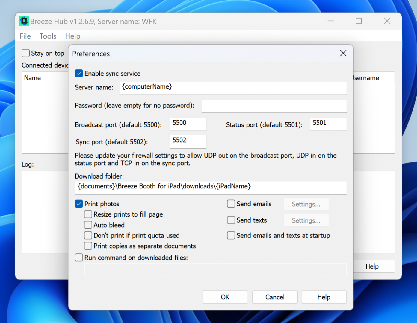 To do this go to File > Preferences and check that Enable sync service is enabled along with Print Photos. There are additional printing options you can enable if required. You can learn more about these in more detail in the Breeze Hub guide.