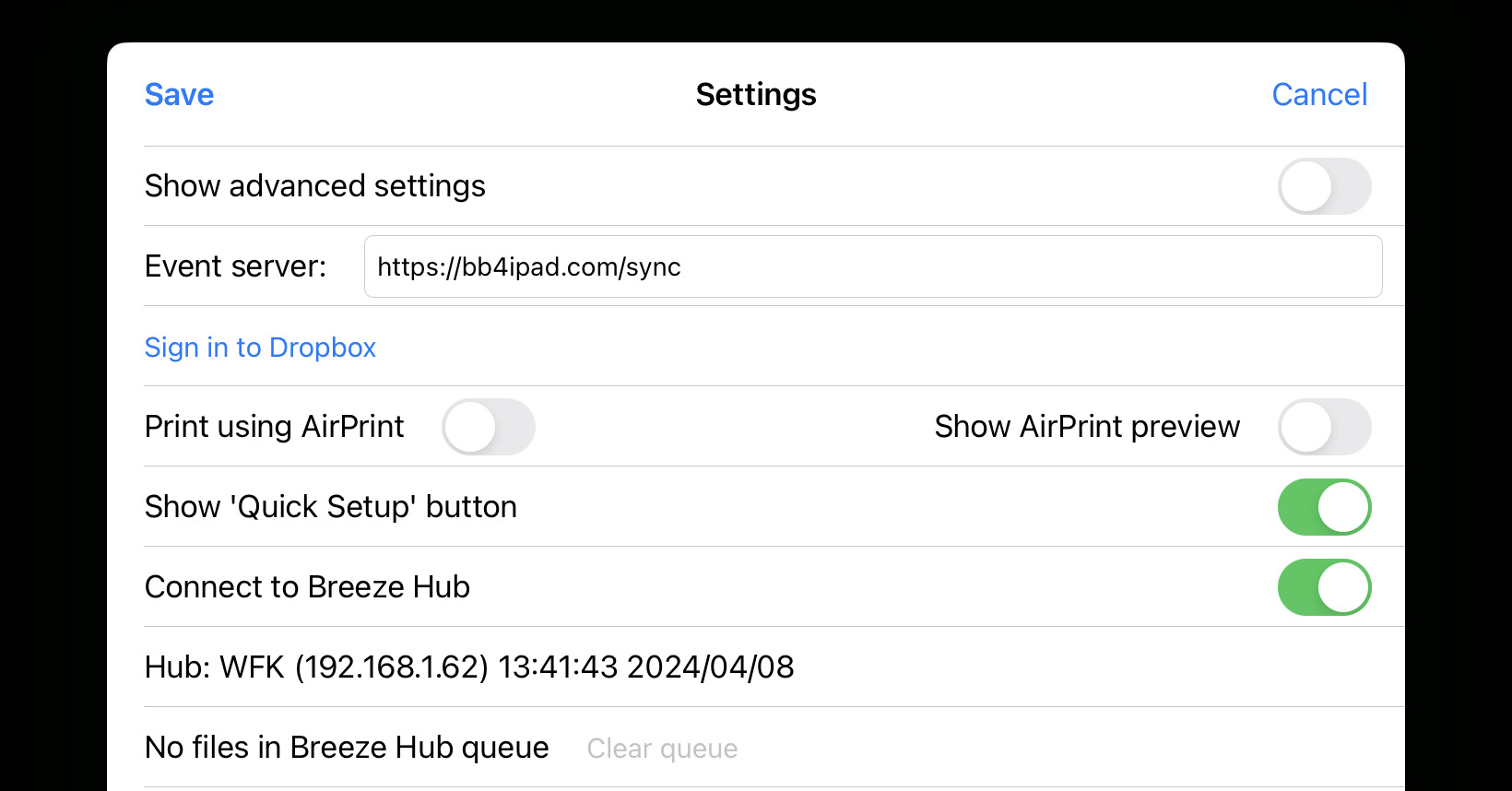 Once you have Breeze Hub setup on your PC you then need to Connect to Breeze Hub in the Breeze Booth app.