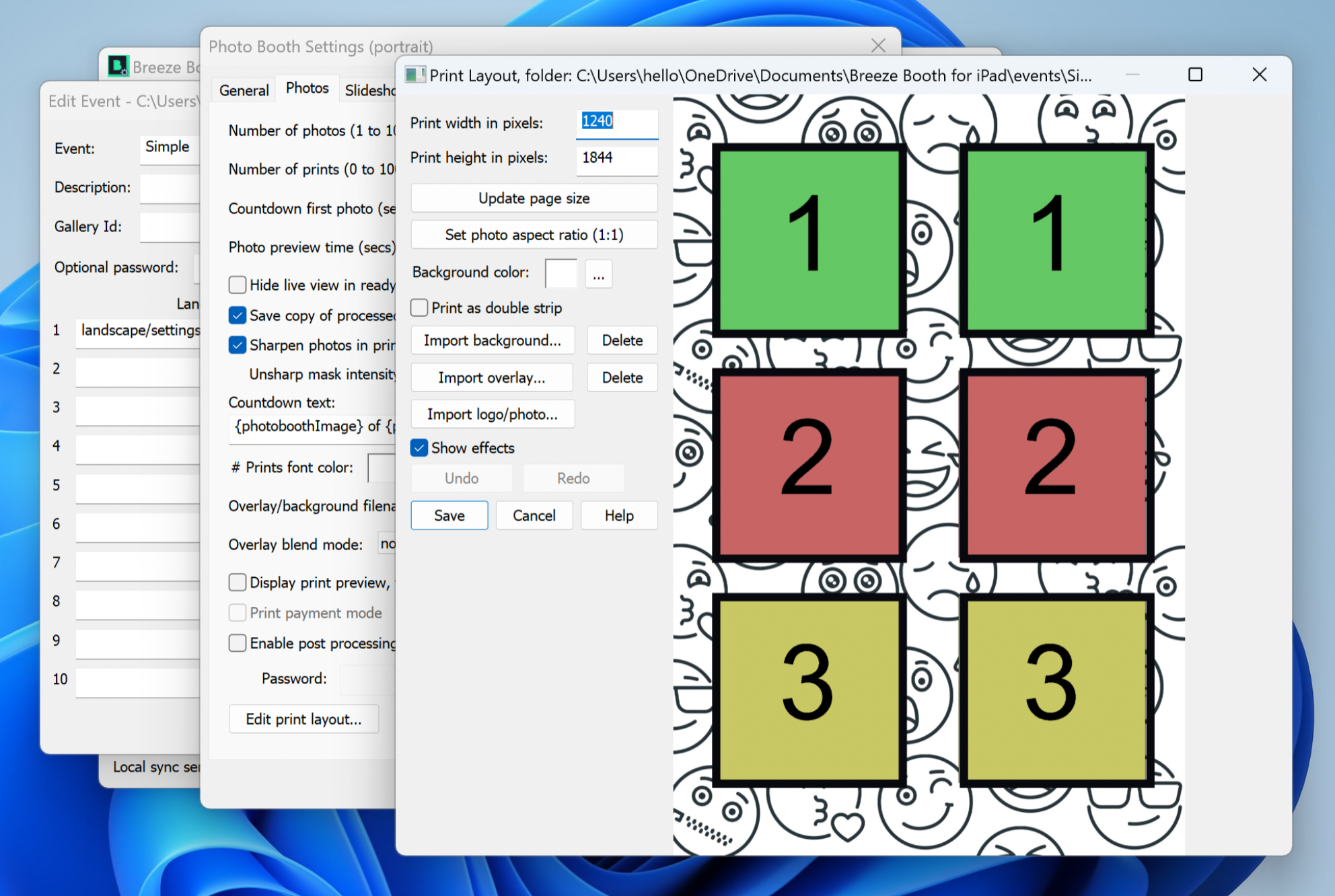 When you are happy, save all your changes. If everything is connected and enabled, you can run a session through Breeze Booth to make sure it all works.