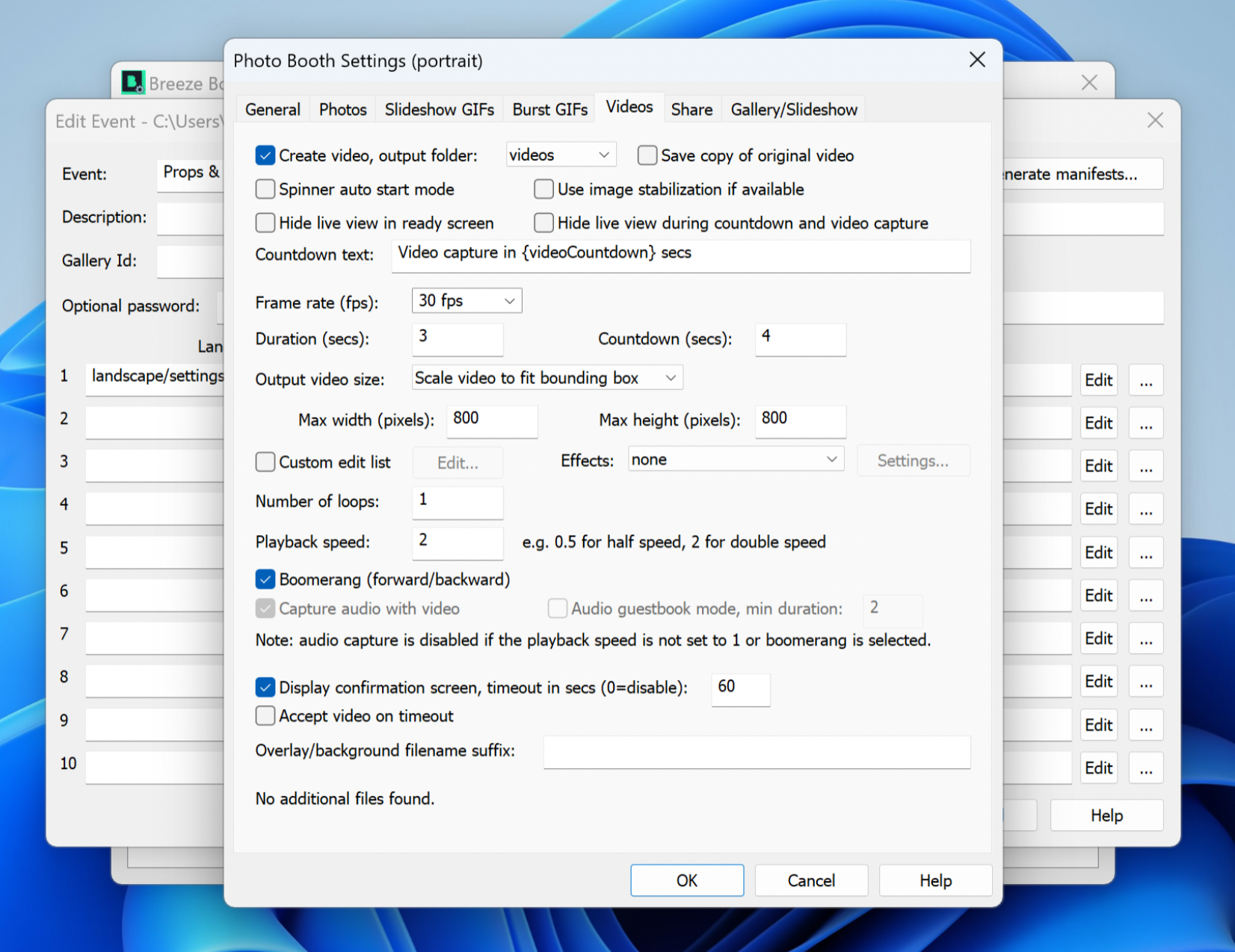 Set the timeout to the number of seconds the confirmation screen should be displayed before it is closed automatically. Set “Accept video on timeout” to automatically accept the video if the timeout occurs otherwise it will be cancelled and the photo booth will return to the ready screen.