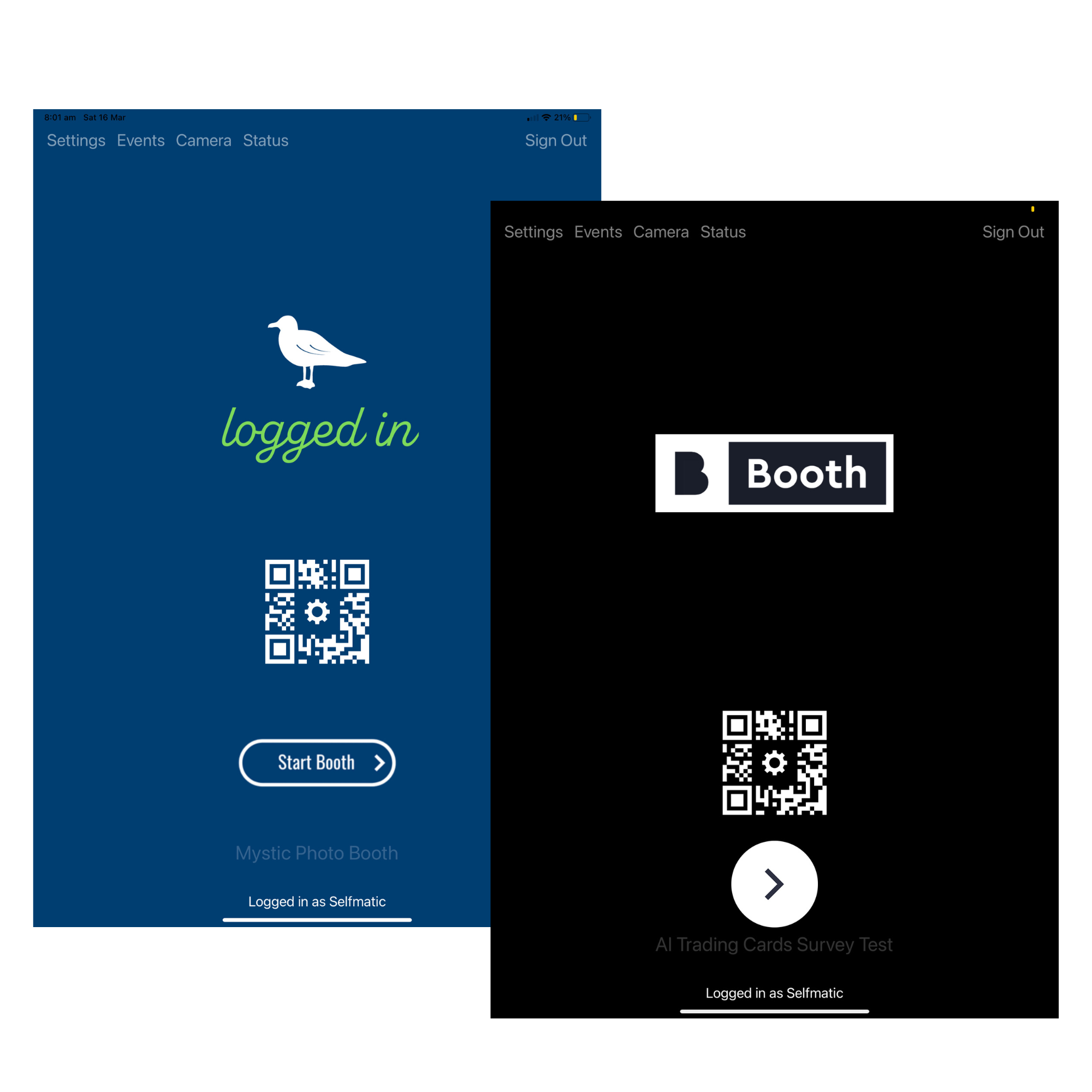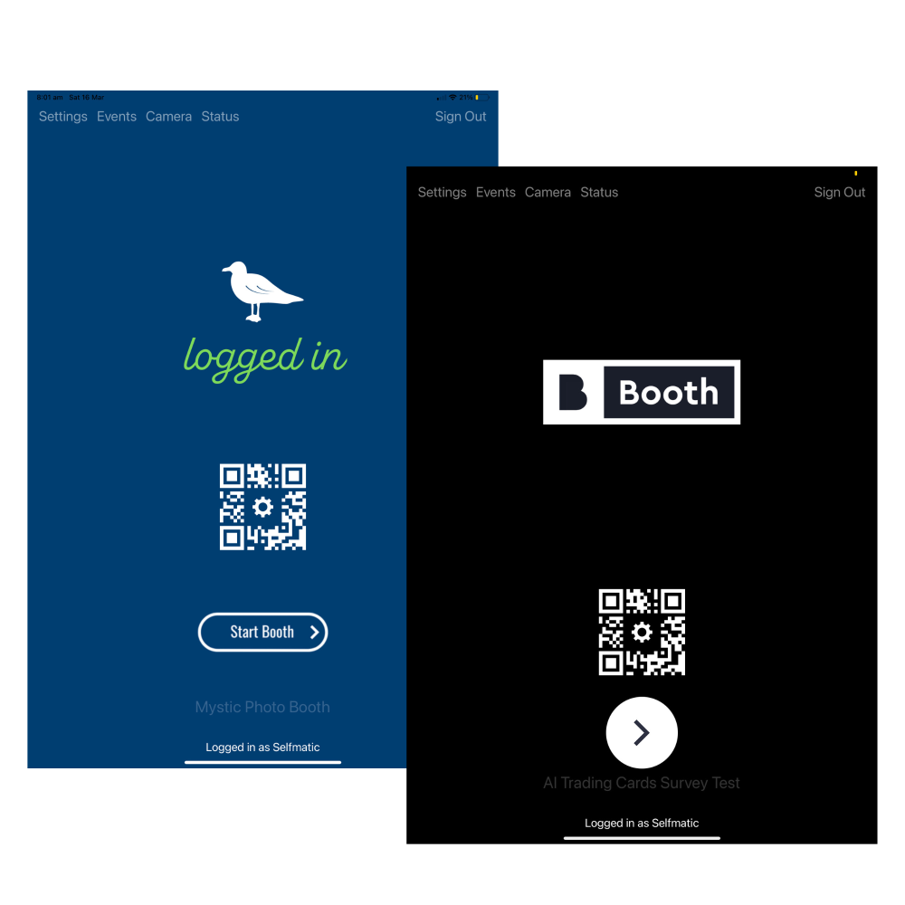 The appearance of the quick setup screen can customized by placing a background screen image and/or an overlay image in the Breeze Booth folder on the iPad.