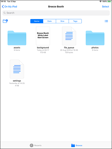 If the <startupScreenAssetsFolder> tag is defined in the settings.xml file the app will look for button and screen images for the startup screen in the specified subfolder of the Breeze Booth folder.