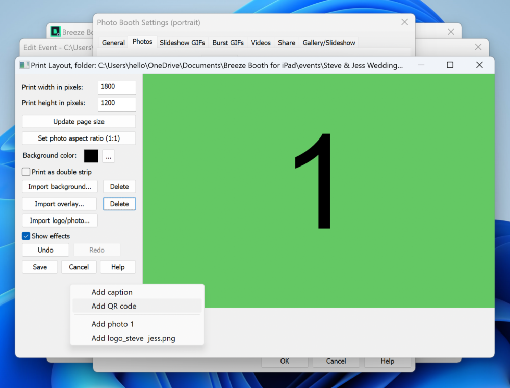Run a test session and you should now see that the Print Layout has the QR code