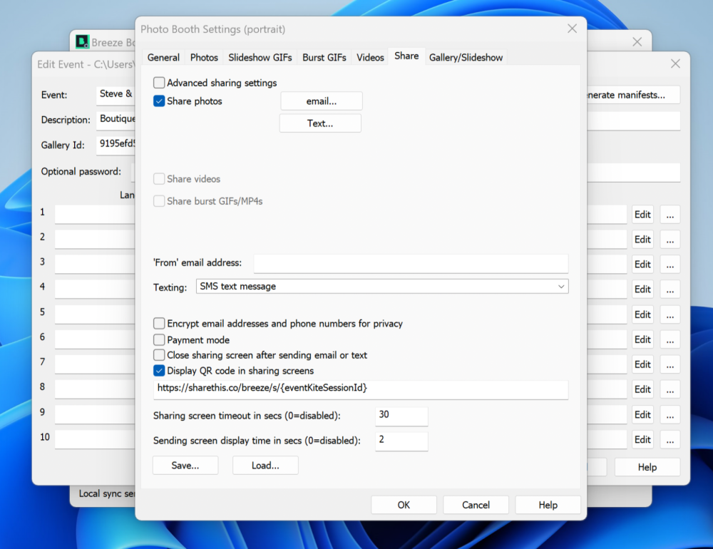 Then copy the Gallery or Microsite URL in to the Display QR Code in sharing screens field: