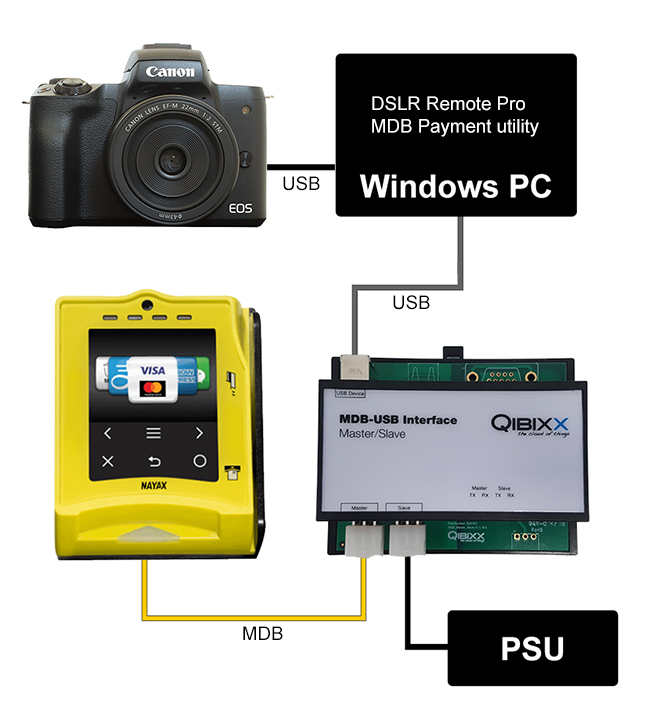 A typical payment system for a Windows based photo booth running Breeze Remote Pro is shown below: